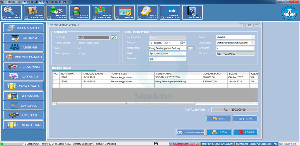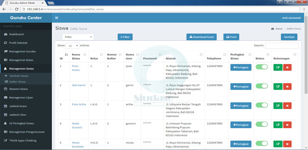 Dengan adanya terselenggaraan pendidikan di Indonesia, makan turut serta Siudase untuk mengembangkan aplikasi pendidikan yang berbasis mobile, webbased dan desktop yang terintegrasi yaitu Aplikasi Guruku Sistem Informasi Pendidikan Terpadu atau Aplikasi Sistem Informasi Pendidikan Terpadu Guruku Komunikasi Antar Guru Siswa Dan Orangtua Secara Terpusat pada sekolah.