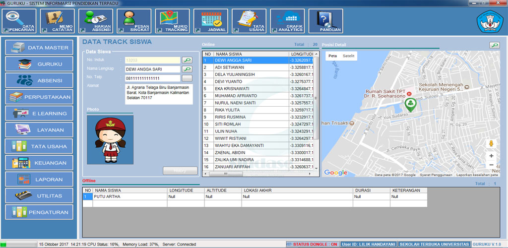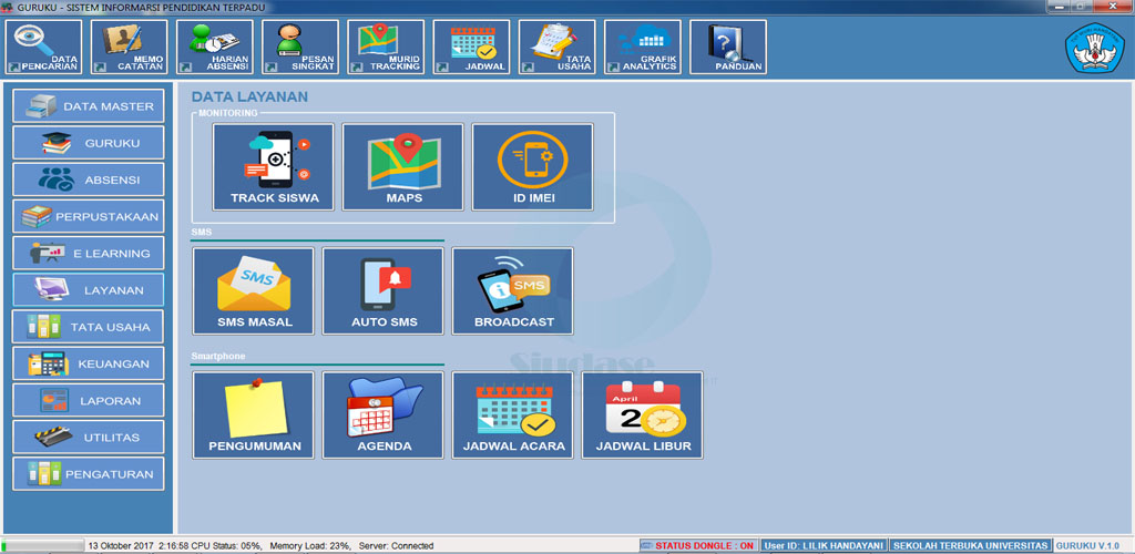 Aplikasi Guruku memiliki 19 modul dukungan dalam sistem informasi pendidikan terpadu :