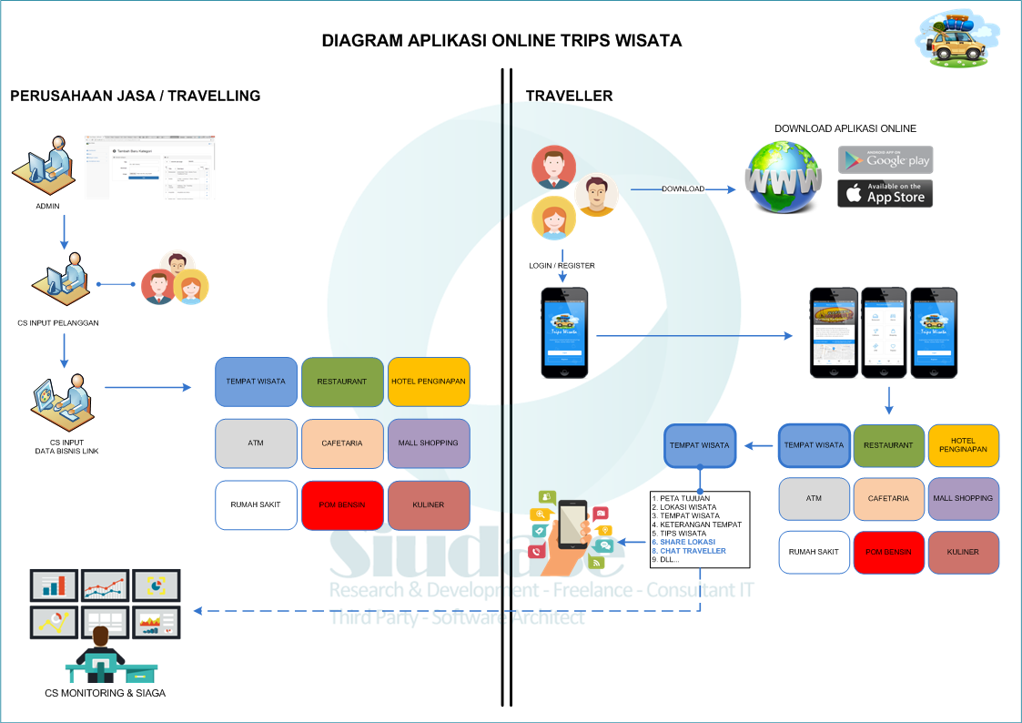 Dengan adanya aplikasi online Trips Wisata dengan berbasiskan OS Android sebagai Front End App, tentunya tidak lepas dengan adanya Aplikasi berbasiskan web based atau sering disebut Back End App versi Web based Content Management System, CMS Back end ini berfungsi untuk memenuhi kebutuhan traveler secara on time update berkelanjutan. CMS App Web based ini yang di maksud adalah untuk memudahkan Customer Service untuk memasukkan data menu secara otomatis dan menambahkan yang sekiranya diperlukan terutama menu-menu fasilitas yang sekiranya diinginkan traveler sesuai kebutuhan masing-masing. Jadi tidak perlu khawatir untuk update menu atau data yang diinginkan semuanya berjalan secara otomatis dan diterima langsung oleh pengguna atau traveler akan kebutuhan selama perjalanan.